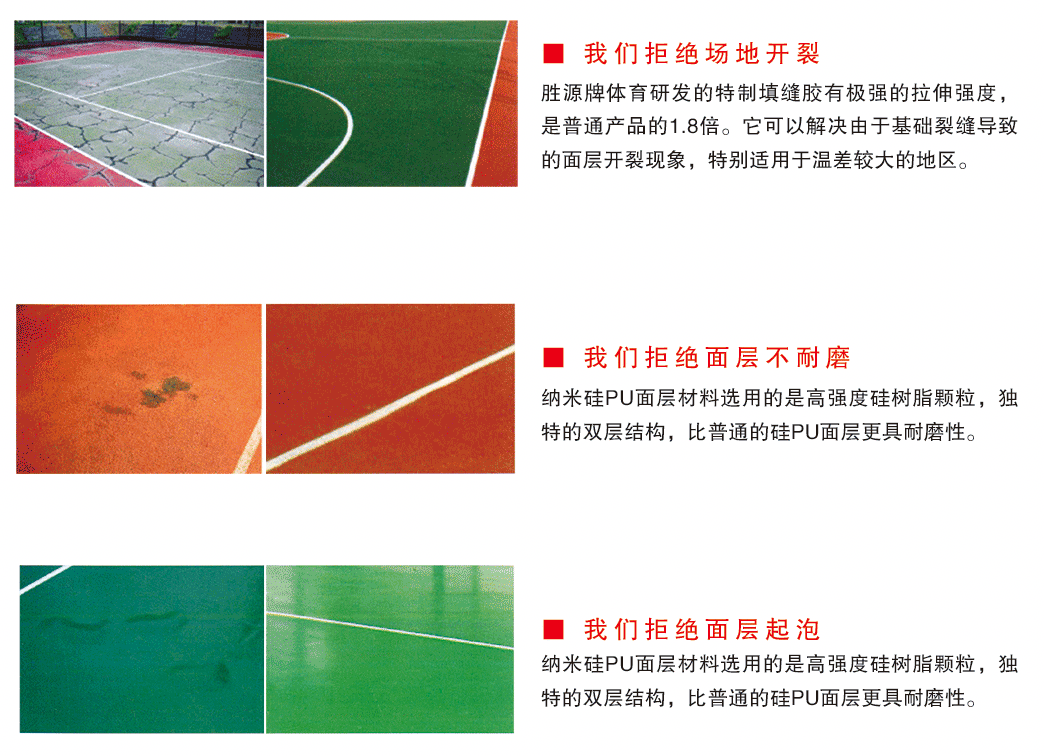 環(huán)保型硅PU系由水泥基礎(chǔ)界面、修補(bǔ)層、彈性層、面涂料組成的彈性運(yùn)動(dòng)涂料系統(tǒng),單組分直接涂刮,不同的施工厚度,可以得到不同彈性的涂層該涂層有持久的彈性,對(duì)水泥地面和瀝青地面都有優(yōu)異的結(jié)合容易刮涂,干膜耐侯耐水優(yōu)異。